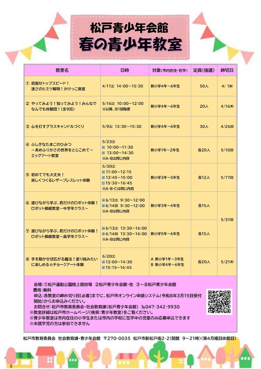 ※青少年教室は市内在住の小学生から高校生又は市内の学校に在学中の児童、中高生のみ応募申込できます