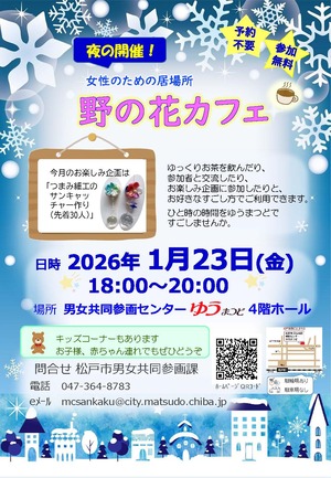 【Friday, Jan. 23】Safe space for women, 'Nonohana Cafe' January gathering / 女性のための居場所「野の花カフェ」1月の開催日