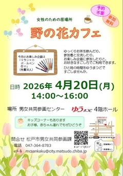女性居所「鲜花咖啡馆」4月活动日 女性のための居場所「野の花カフェ」4月の開催日