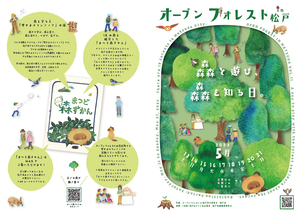 - 活动期间将公开平时无法踏入的松户市内「小小森林」共19处。不妨与您家人走进这小小的充满新绿清香,一缕阳光透过树叶展现出童话般美景的大自然中,一同享受这美好的五月时节。