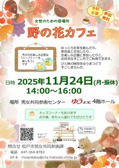 女性居所「鲜花咖啡馆」11月活动 女性のための居場所「野の花カフェ」11月開催