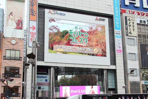 11月19日(月曜)から22日(木曜)まで、東京・新宿駅東口にあるスタジオアルタの街頭ビジョン「アルタビジョン」で松戸モリヒロフェスタのCMを放映しました。