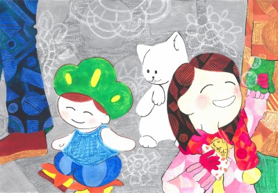 韓国在住で松戸市美術展などで受賞歴のあるアーティストの佑芽さんと、「まつどやさしい暮らしラボ」の市民ライターとして活動中の後藤美加さん。松戸市内で元同僚として働いていた2人が、ユニット「ゆめおむすび」として松戸を舞台にした絵本「風の子フゥ」を制作しました。