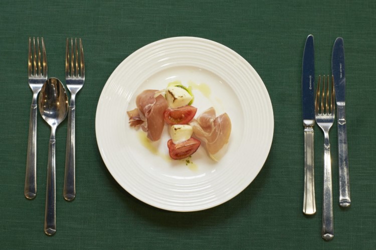 カーサミーアさん「カプレーゼは春が旬のフルーツトマトとモッツァレラチーズを炙って少し香ばしさを感じるカプレーゼです。本日は高糖度トマトと名高い、アメーラを使用しております。」