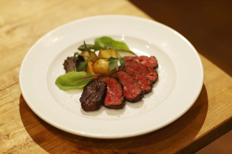おすすめは牛ハラミのステーキだ。アメリカ産最高ランクプライムを使用していて、食べ応えがあるのにさっぱりしている。女性でもペロリと完食できると評判だ。