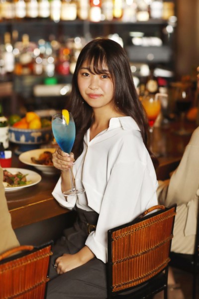 末吉さん「入り口は隠れ家のようで、中に入ると薄暗くお洒落な空間で、私はとても好きな雰囲気でした。カウンターだとお酒を作ってる様子を見られたり、お店の人と話せたり、お酒の瓶が並んでるので写真も映えるし、次来る時もきっとカウンターを選びます。お店の定員さんのコミュ力にも圧倒されました(笑)。私も営業をやっているのでよく話す方なのですが、店員のお姉さんのお客さんへの話の振り方や、笑い話をするのが上手なのを真似したいと思いました。」