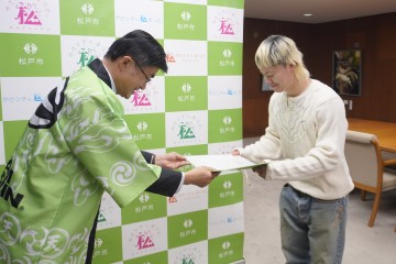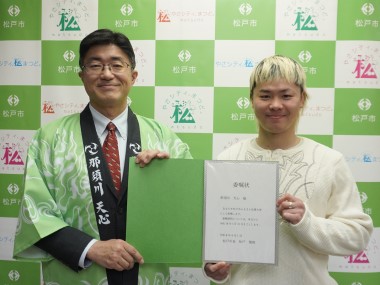 松戸市長よりふるさと応援大使再任の委嘱状を交付