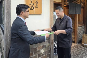那須川天心氏と富田治氏のふるさと応援大使再任に伴い、両氏へ松戸市長から委嘱状を交付しました。