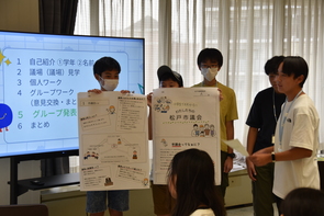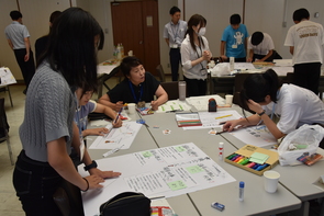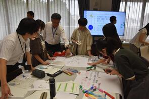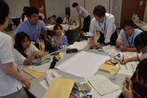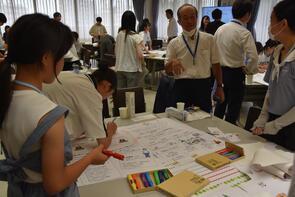 - 短い時間ではありましたが、班で意見を出し合いながら内容を検討し、その結果を模造紙にまとめて発表しました。