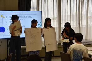 - 子どもたちは、グループワークで出された意見がどのように反映されたのか説明を聞きながら、熱心に耳を傾けていました。