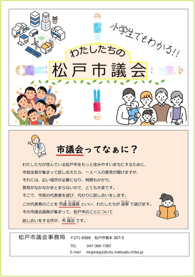 - 松戸市議会では、子どもたちが議会の役割や仕組みを学び、市政への関心を持ってもらうことを目的として「松戸市議会ガイドブック」の作成に取り組みました。