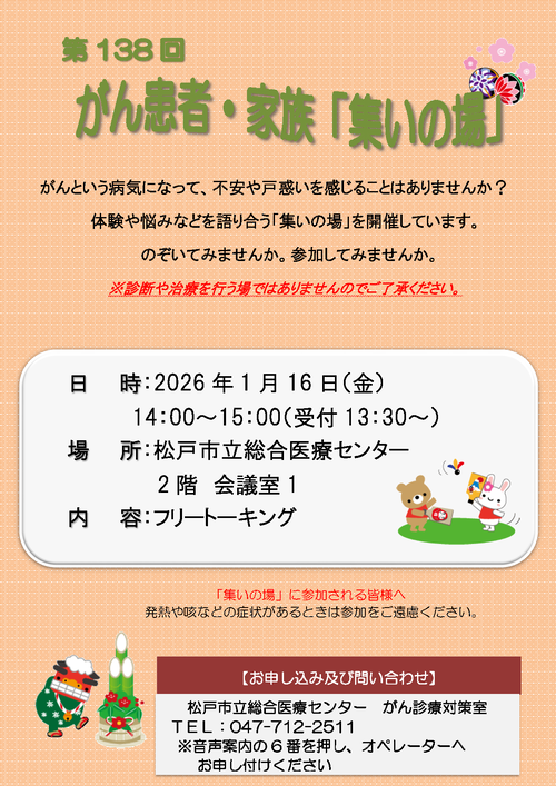 2026年1月16日(金曜)にがん患者・家族「集いの場」を開催します