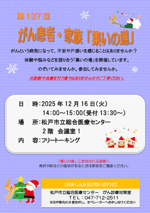 2025年12月16日(火曜)にがん患者・家族「集いの場」を開催します