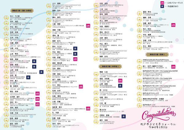 ダンスやピアノの演奏、大会の映像や写真をスクリーンに投影しながら普段の練習や将来の夢について語る受賞者など、これからの活躍が楽しみになるパフォーマンスでした。