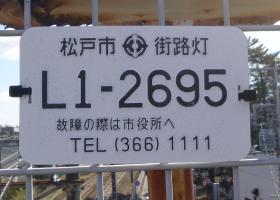 また、道路照明灯には、Lで始まる管理番号が付いています。破損や不具合等を見つけた場合には、この管理番号もあわせてお知らせください。