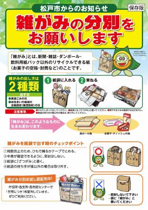 雑がみの出し方や雑がみに該当するもの・しないものをまとめたチラシを作成しています。