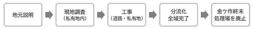 - 常盤平地区の分流化が全域完了後、千葉県の流域下水道に編入したのち、金ケ作終末処理場を廃止します。
