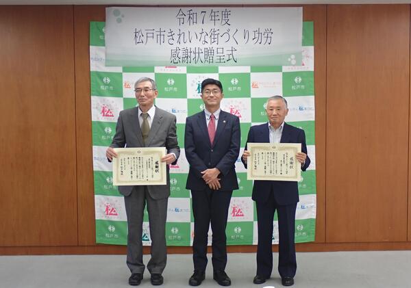 令和7年度きれいな街づくり功労表彰につきまして、美化衛生部門3団体を表彰し、感謝状等を贈呈しました。