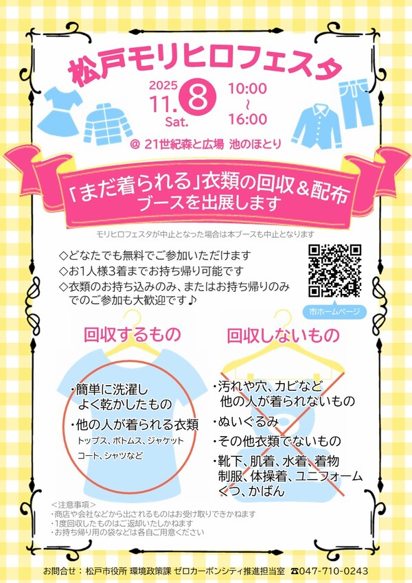 松戸モリヒロフェスタで「まだ着られる衣類」の回収&配布ブースを出展します!