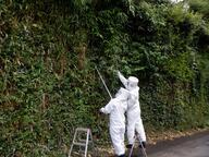 ハチ防護服を着用した作業