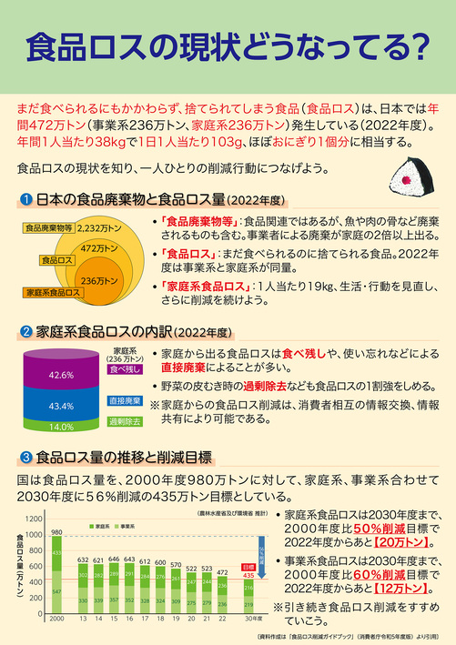 ・毎年10月は「食品ロス削減月間」、10月30日は「食品ロス削減の日」と定められています。