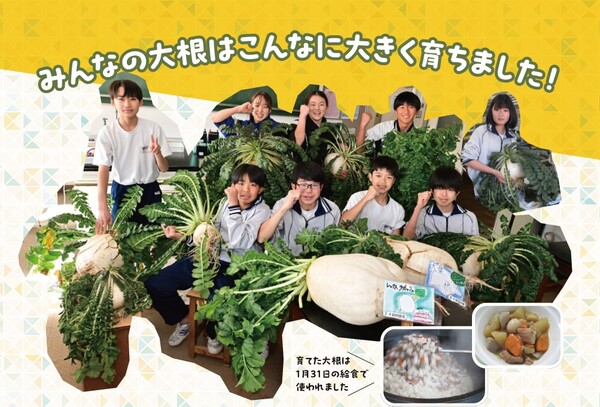 「SAKURAメンバーズ」は前任校を合わせると計14年続けていますが、初めての優勝で本当にうれしいです。約半年間、自分たちの思い通りにはいかない自然の中で、みんなで協力し収穫までがんばりました。本当にやり切った良い笑顔でした。先輩たちから続くこの活動を通して、仲間と協力する大切さを学び、そして食べることに感謝をしたいと思ってもらえたことが、この仕事をしていて一番うれしいことです。今年も多くの方に支えられ、大きな大根を育てることができました。ありがとうございました。