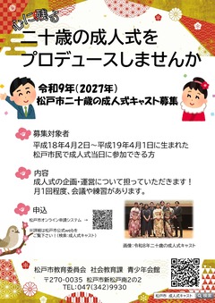 「一生に一度の成人式を、自分たちの手で創りませんか?~松戸市二十歳の成人式キャスト募集(要申込)~」