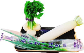 米、あじさい葱、かぶ、にんじん、キャベツ、長ねぎ、鰯、きゅうり、小松菜、牛乳