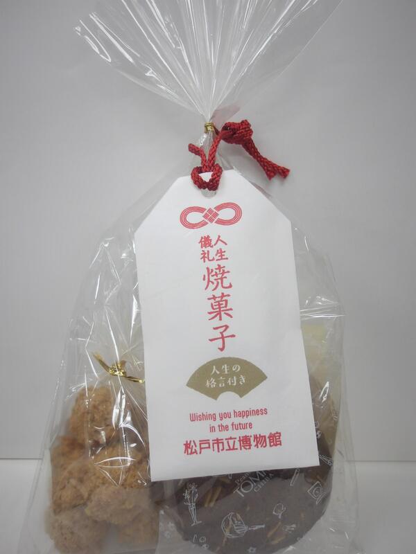 オリジナルグッズ(※人生の格言付き焼菓子です。何が出るかはその日のお楽しみ!会期中、当館ミュージアムショップでの限定販売となります。)