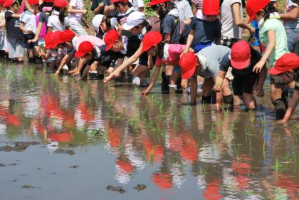 子どもたちは「泥がぬるぬるしているけど、冷たくて気持ちいい」「最初は難しかったけど、だんだんうまく植えられるようになった」と、泥だらけの顔で楽しそうに話していました。