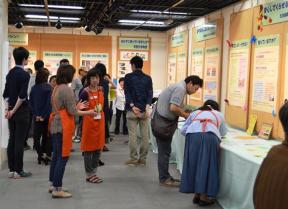 西口デッキでは、環境や食育、健康などの身近な問題をテーマにしたブースがたくさん出展されました。輪投げやクイズなど、子どもでも楽しめる内容で、興味を引いていました。