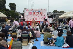 駅のロータリーには見事な桜が咲き誇り、舞台では、子どもからお年寄りまで幅広い年齢の人たちが演奏や踊りなどを披露し、地域の皆で盛り上げていたお祭りでした。