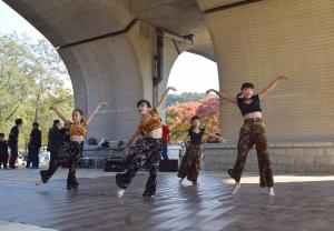 11月5日(日曜)には、市内のダンスチームが橋の下ステージでパフォーマンスを披露。小さいお子さんから大人までさまざまな年齢層の人がかわいく、美しく、かっこよく踊り、見る人たちを魅了していました。