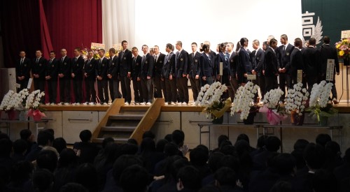 選抜高等野球大会での活躍を願って、全校生徒による野球部の壮行会が実施されました。