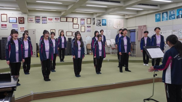 先輩方が引退し、最上級生となった昨年、「全国に向けて最後まで全員でやり切ろう!」と目標を立てたそうです。今年からやっと制限が一切なくなり、全員で歌うことができるようになりました。「初めの頃は、一人ひとりの熱量も違い、その中で何度も話し合いを重ねて徐々に意識がひとつになっていきました(古川さん)」と、自主的に練習方法も変えていったそうです。ハーモニーをつくることに重きを置いて、お互いの音を聴き合うことを意識した「聴き合い練習」も取り入れたのもそのひとつ。普段は週に5日練習日がありますが、この練習以外にも、朝や昼休みなど、自発的にみんなが集まり、可能な限り時間をかけて取り組みました。
