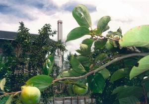 煙突は変化する事はないが、その周りには、常に四季を楽しませ、小躍りする植物達が。