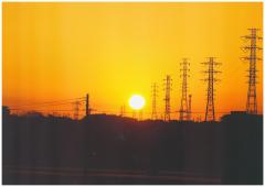 「国分川分岐水路の夕陽」