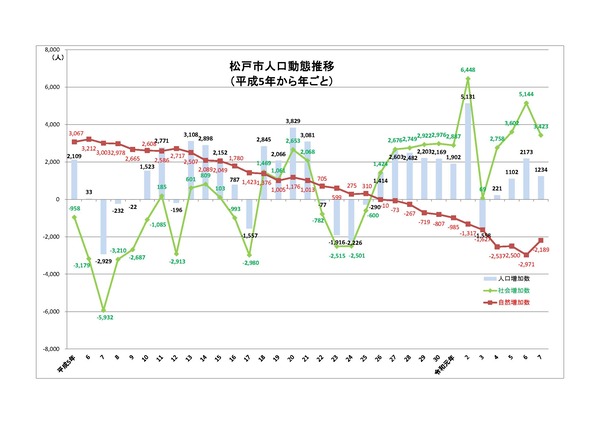松戸市人口動態推移グラフ(平成5年から年毎)(PDF形式)(PDF:133KB)