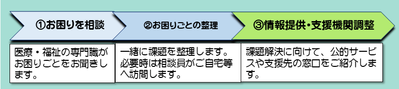 高齢者いきいき安心センターにお越しのうえ、「福祉まるごと相談窓口を利用したい」とお申し出ください。