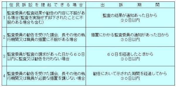 住民訴訟の出訴期間には、次のような制限がありますので、ご注意下さい。
