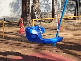令和5年度にも小金原公園のブランコのつり席を、背もたれがついたインクルーシブタイプのものに交換しました。