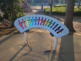 (4)レインボービート 車いすや視覚障害の方も使用可。叩くと不思議な余韻を残します。