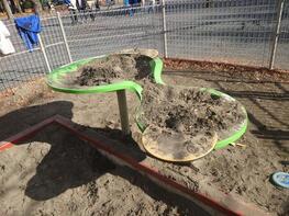 (11)砂場 車いす利用や感覚過敏があり、砂場に入れないお子様でも、テーブル型で遊びやすく配慮されています。