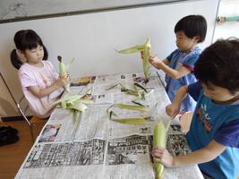 食育の取り組みとして、とうもろこしの皮むきをしました。