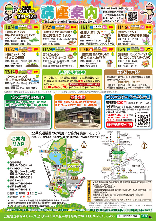 パークセンターでは、年に4回、「パークセンターだより・どんぐり」を発行します。催し物いっぱいの21世紀の森と広場に、ぜひお越しください!