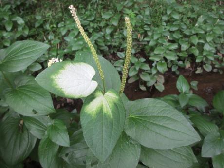 つどいの広場の山際の水辺に、白色がかった葉がぽつぽつと見られます。四季七十二候の一つ「半夏生」にも重なるこの植物は、7月2日付近に花を咲かせます。花穂のすぐ下にあって白色化する葉は花弁の役割を果たすとか。広場散策の折には、是非木の下の水辺をのぞいてみてください。(担当:お)