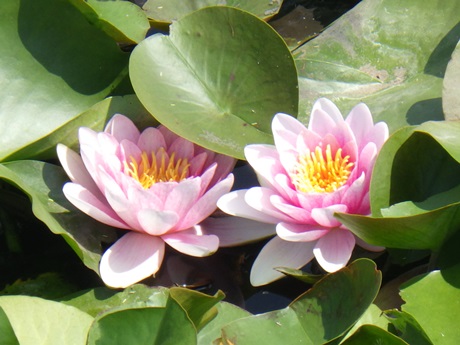 みどりの里にスイレンが咲き始めました。水面に茂った葉の間から、ピンク色の花がポツポツと咲いています。これから見頃を迎えますので、ご来園の際はぜひご観賞ください。(担当:な)