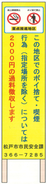 - 条例啓発用ステッカー(松戸駅周辺の商店街路灯に設置)