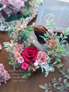 プリザーブドの女王・大輪ローズの贅沢クリスマス壁飾り