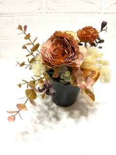 茶色の大輪の薔薇を使ったアーティフィシャルフラワーのアレンジを作りましょう。